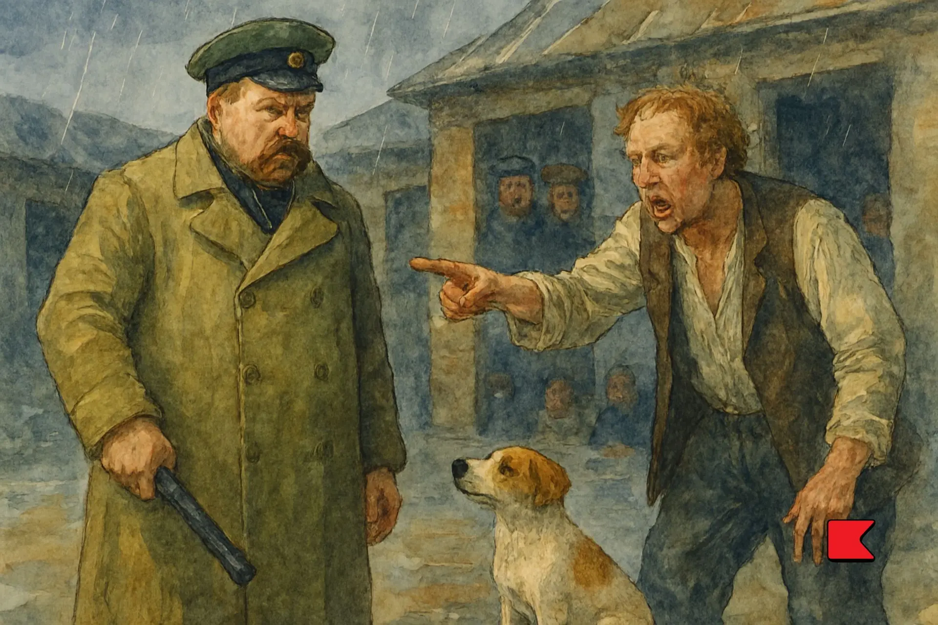 পুলিস ইনস্পেক্টর ওচুমেলভ[১] হেঁটে যাচ্ছিলেন বাজারের মধ্যে দিয়ে। গায়ে তাঁর নতুন ওভারকোট, হাতে পাটুলি এবং পিছনে এক কনেস্টবল। চুলের রঙটা তাঁর লাল, হাতের চালুনিটা ভর্তি হয়ে গেছে বাজেয়াপ্ত-করা গুজবেরিতে। কোথাও কোনো সাড়াশব্দ নেই...বাজার একেবারে খালি ক্ষুদে ক্ষুদে দোকান আর সরাইখানার খোলা দরজাগুলো যেন একসার ক্ষুধার্ত মুখ-গহ্বরের মতো দীনদুনিয়ার দিকে হাঁ করে আছে। ধারে কাছে একটি ভিখিরি পর্যন্ত দাঁড়িয়ে নেই।