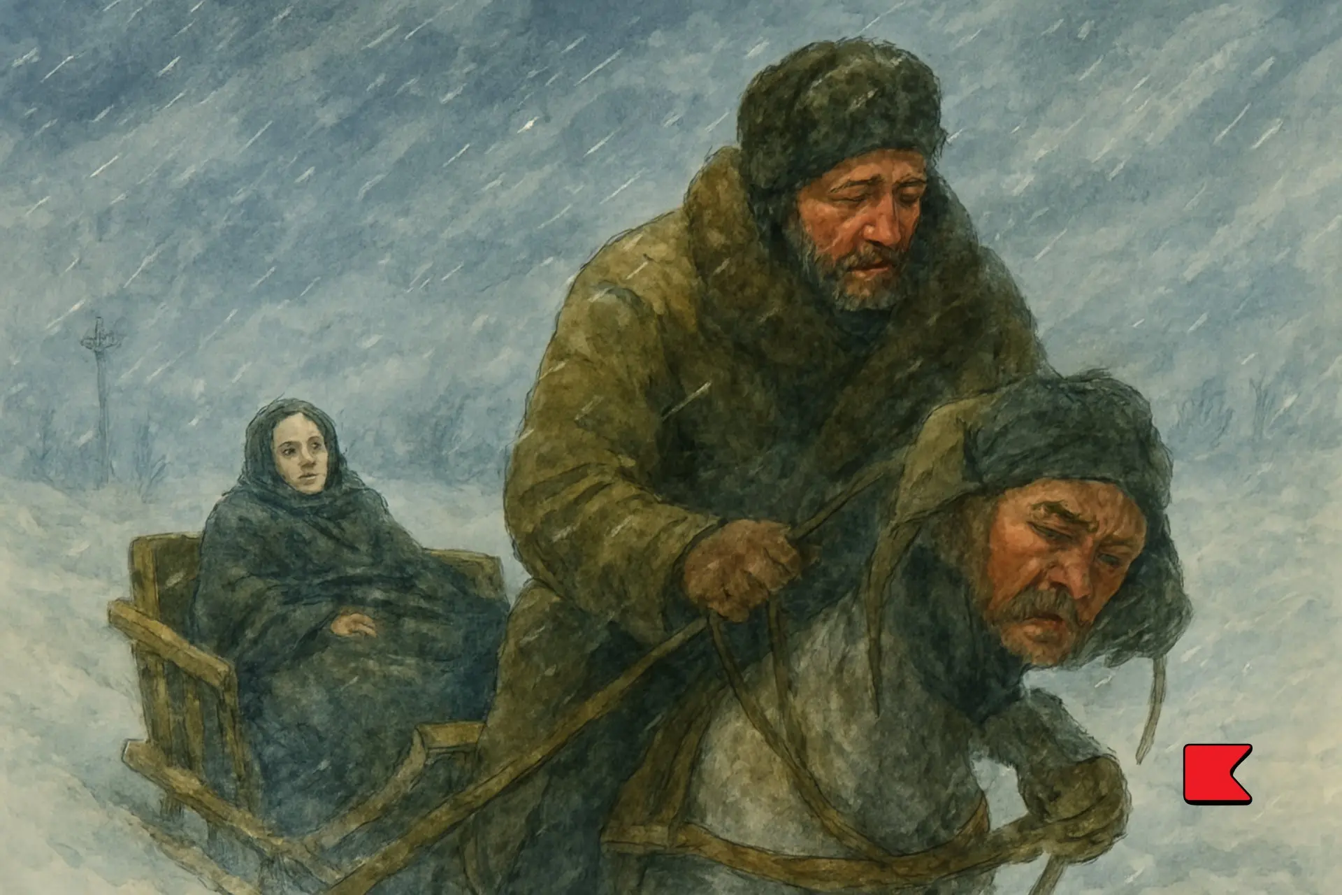 কারিগর গ্রিগরী পেত্রোভ, একজন অত্যুৎকৃষ্ট শিল্পকারী এবং একজন পাকা মদ্যপ ও নিষ্কর্মা বলে সারা গালচিনো জেলায় যার সুপ্রতিষ্ঠিত খ্যাতি, তার অসুস্থ স্ত্রীকে নিয়ে চলেছে জেমস্তভো হাসপাতালে। তাকে যেতে হবে ৩০ ভেস্ত (দৈর্ঘ্যের রুশীয়মাপ ১/৩ মাইল) আর পথ খুবই ভয়াবহ; এমন কি ডাক হরকরার পক্ষেও পেরে ওঠা ভার, সেখানে কারিকর গ্রিগরীর মতো একজন অলস মানুষের কথা না বলাই ভালো। একটা কনকনে তীব্র বাতাস তার মুখে এসে লাগছিল। তুষারকণাগুলো বিরাট বিরাট মেঘের আকারে ঘুরপাক খাচ্ছিল, আকাশ থেকে তৃষার পড়ছে না মাটি থেকে উঠছে তা বোঝা কঠিন হচ্ছিল। তুষারের জন্য মাঠ-ঘাট, টেলিগ্রাফের পোষ্টগুলো কিংবা বনবাদাড়ও দেখা যাচ্ছিল না, আর বিশেষ করে যখন দমকা