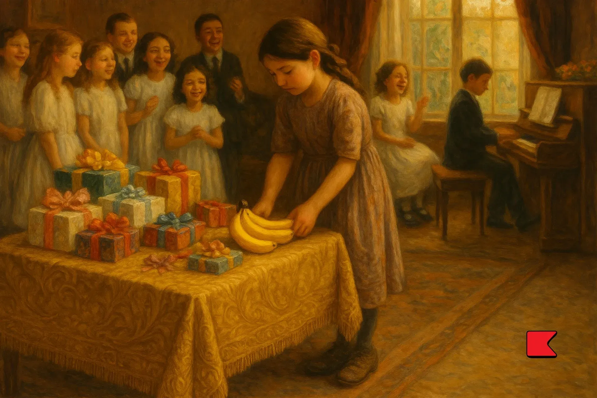 যখন বৃষ্টি পড়ে (ইমেরেতিতে মার্চ-এপ্রিল মাসে বরাবরই বৃষ্টি হয়) আর রিয়োনির ঝোপগুলো থেকে বাতাস পীচ আর বুনো প্লাম ফুলের গন্ধ আনে, ছোট্ট ৎসাবুনিয়া তার মাকে জিজ্ঞাসা করে, “মা, তোমার চাদরটা কি আমি গায়ে দিতে পারি?”