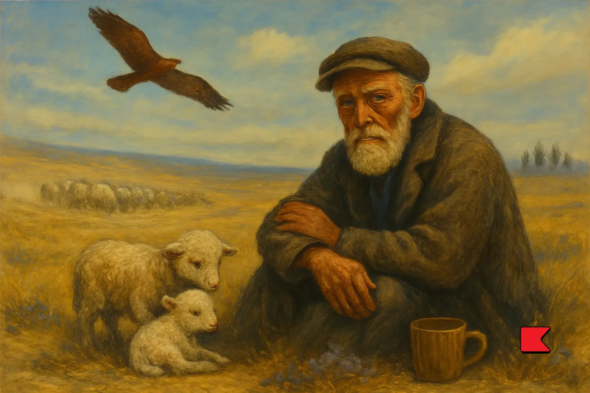 নিচেয় খোদলের মধ্যে শুকিয়ে আসা পুকুরের কাছে ভেড়াগুলো গাদাগাদি করে একটা দঙ্গল পাকিয়ে একসঙ্গে জড়ো হয়েছিল। জগতের কাছে ক্লান্ত ভাবে তাদের পৃষ্ঠ প্রদর্শন করে